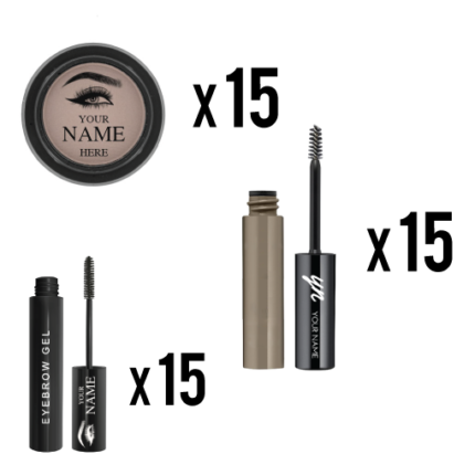 Get 15 Clear Brow Gel, 15 Brow and Lash Serums, 15 Highlighter Pencils and 15 Brow Soaps with a display for it all.